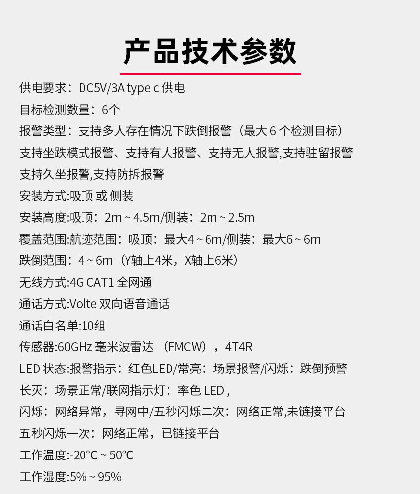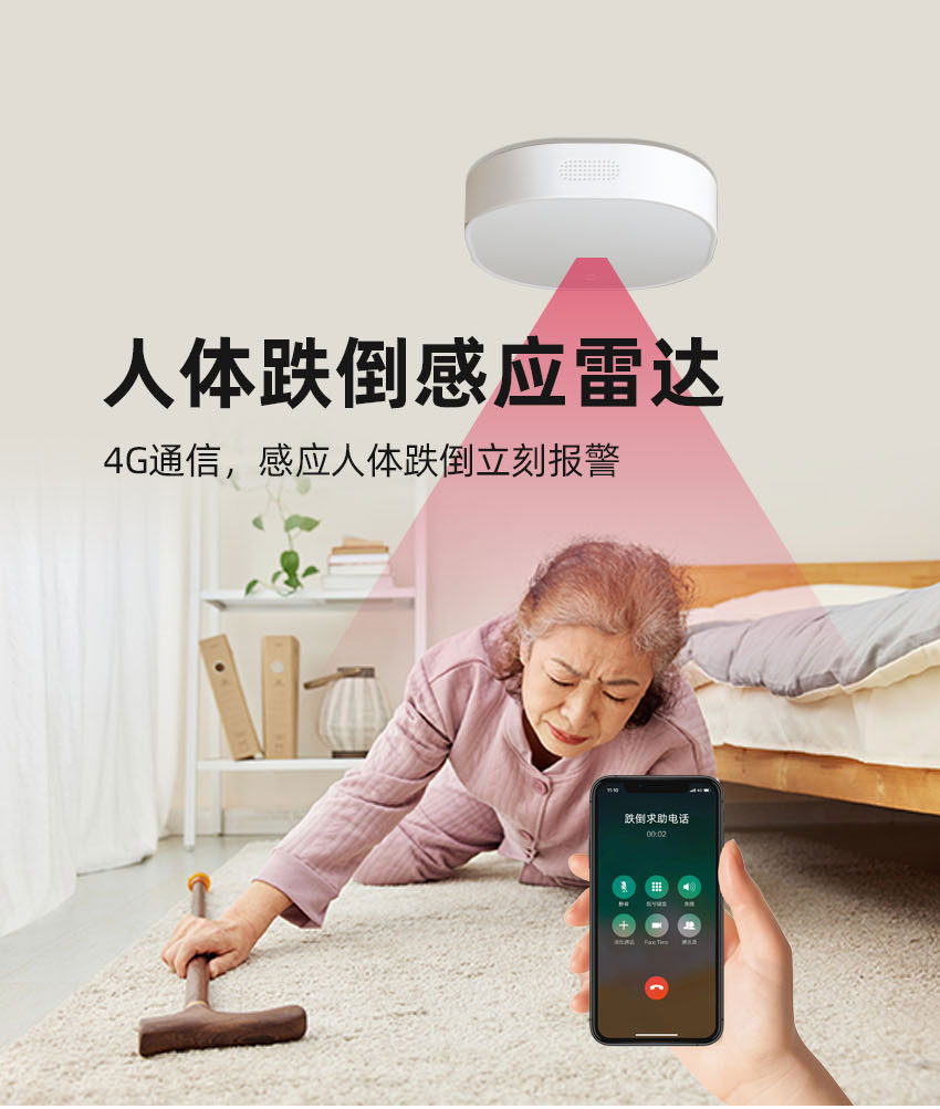 首页 >> 智能设备 >>居家款 >> 人存在36㎡探测器ai语音呼叫智能4g毫米波雷达老人防跌倒报警器