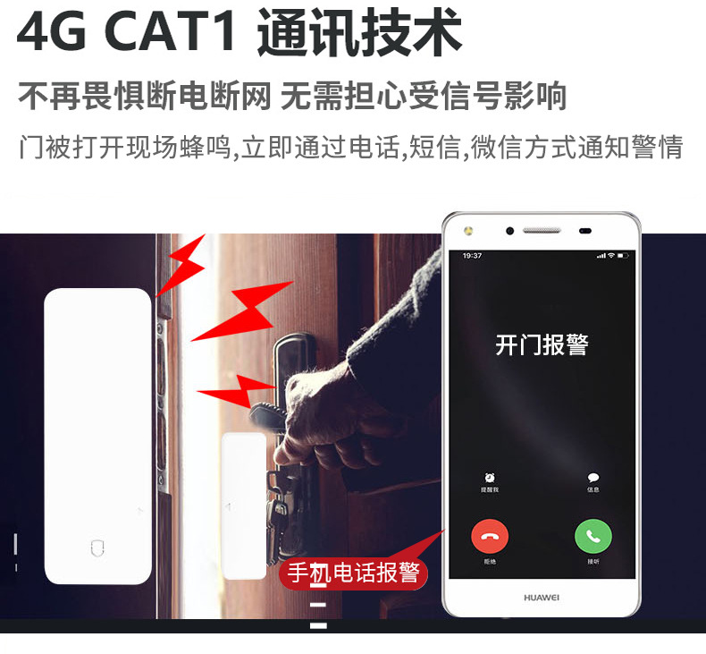 声光高分贝4GCat1智能窗磁物联网报警器家用酒店防盗门感应器  支持门店配送