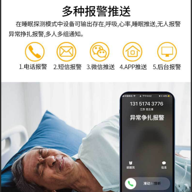 家用无线感应4G养老院智能睡眠监测器心率呼吸报警器60G毫米